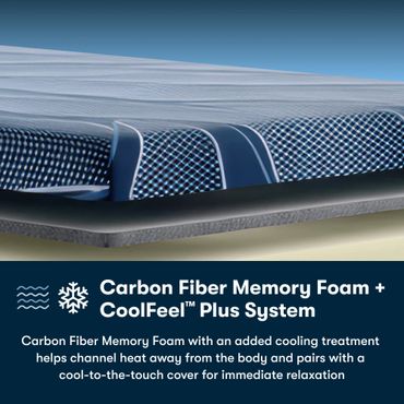Topped with a cool-to-the-touch CoolFeel™ Cover and Carbon Fiber Memory Foam draws heat away from the body